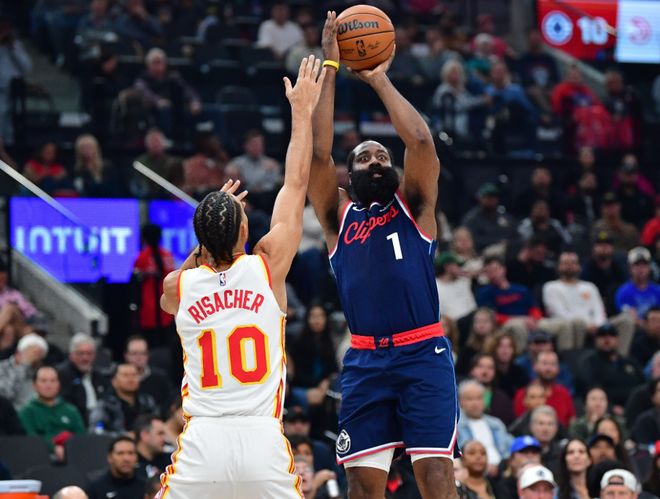 第三节进入拉锯战,老鹰开局先声夺人取得 6 分优势,快船随即以 10-0 攻势回敬,双方交替领先陷入胶着。老鹰凭借更高效的团队配合在第三节末段实现反超,三节战罢快船 76-79 落后 3 分。末节决战堪称过山车,老鹰一度将分差扩大至 10 分,哈登挺身而出连中两记三分率队追平比分,个人达成 35+10+10 三双里程碑。关键时刻克雷伊奇命中第 8 记三分锁定优势,哈登虽轰出 3+1 并尝试绝平三分,但最终因致命传球失误功亏一篑,快船 102-105 遗憾落败。